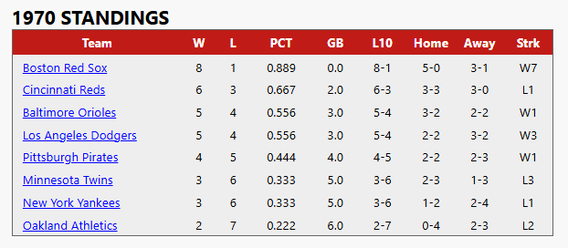 WP- Jim Palmer (1-2) LP- Catfish Hunter (0-2)