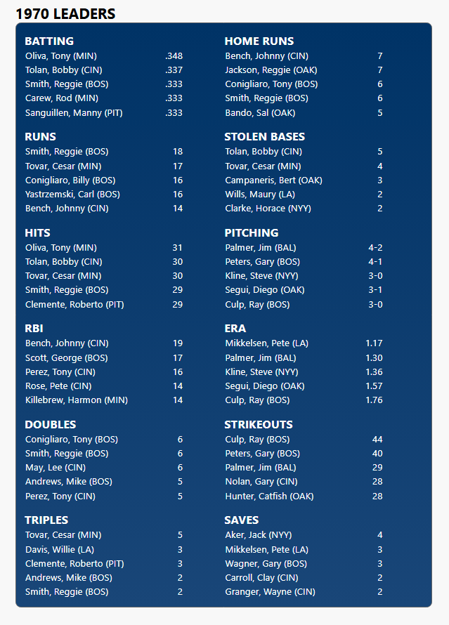 HR- Bert Campaneris (3), Reggie Jackson (7); Willie Davis (2)